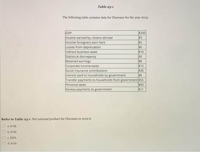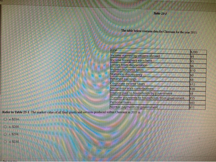 Solved Table 23 1 The Market Value Of All The Final Goods Is Chegg Com