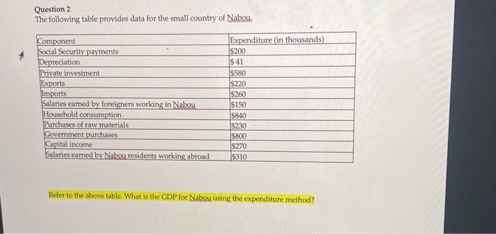 Add a comment Improve this question. GDP 200 Income earned by citizens abroad 9 Income foreigners earn here 5 Losses from depreciation 6 Indirect business taxes 10 Statistical discrepancy 0 Retained earnings 8 Corporate income taxes 12 Social insurance contributions 30 Interest paid to households by government 8. Personal Income and Outlays November 2015.